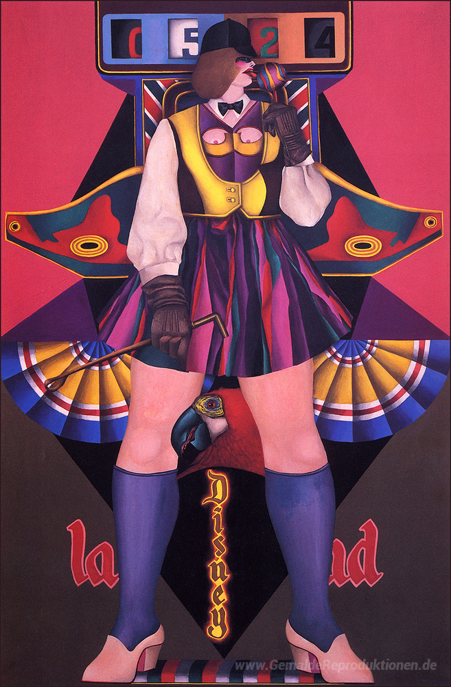 Wir bieten Ihnen eine handgefertigte Reproduktion auf Leinwand des berühmten Kunstwerks 'Disneyland' von Richard Lindner, aus dem Reproduktionsmuseum.