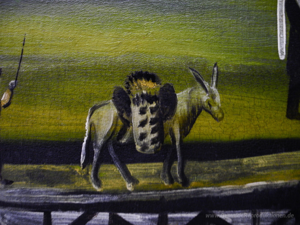 Wir bieten Ihnen eine handgefertigte Reproduktion auf Leinwand des berühmten Kunstwerks 'Donkey Bridge (Fragment)' von Niko Pirosmani, aus dem Reproduktionsmuseum.