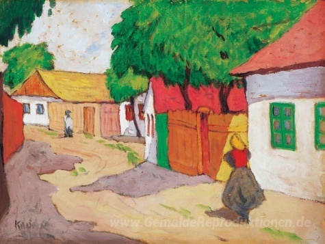 Wir bieten Ihnen eine handgefertigte Reproduktion auf Leinwand des berühmten Kunstwerks 'Dorfstraße' von Bela Kadar, aus dem Reproduktionsmuseum.