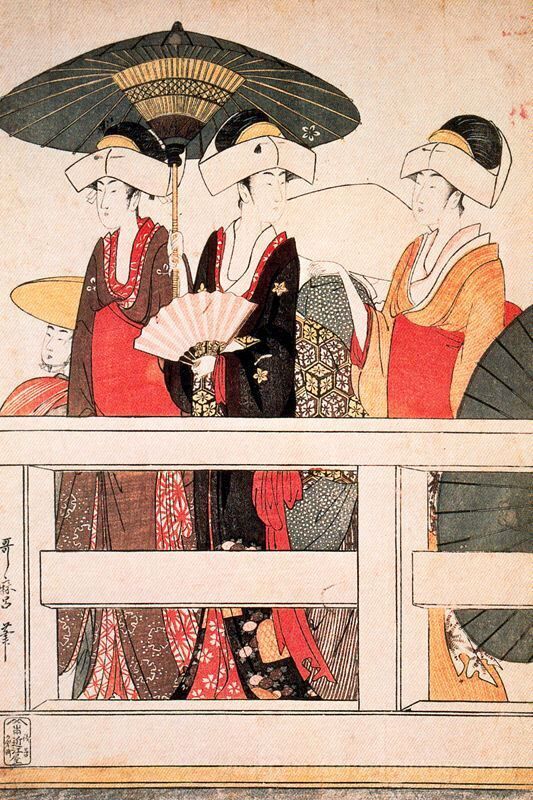 Wir bieten Ihnen eine handgefertigte Reproduktion auf Leinwand des berühmten Kunstwerks 'Drunken Kurtisane' von Kitagawa Utamaro, aus dem Reproduktionsmuseum.