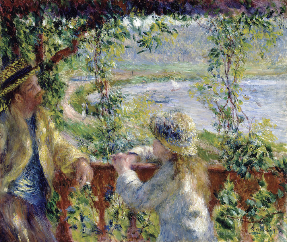 Wir bieten Ihnen eine handgefertigte Reproduktion auf Leinwand des berühmten Kunstwerks 'Durch das Wasser (in der Nähe des Sees)' von Pierre-Auguste Renoir, aus dem Reproduktionsmuseum.