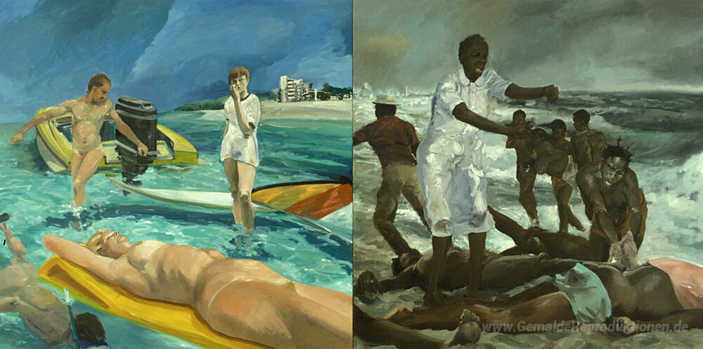Wir bieten Ihnen eine handgefertigte Reproduktion auf Leinwand des berühmten Kunstwerks 'Ein Besuch - Besuch von der Insel' von Eric Fischl, aus dem Reproduktionsmuseum.