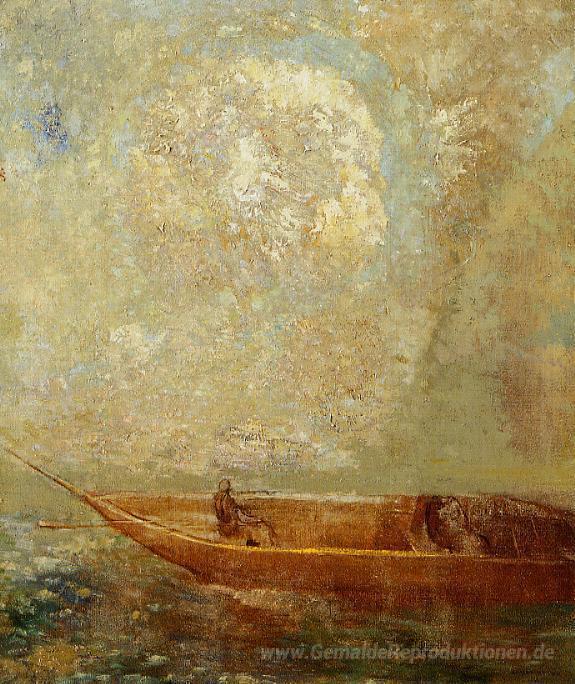 Wir bieten Ihnen eine handgefertigte Reproduktion auf Leinwand des berühmten Kunstwerks 'Ein Boot' von Odilon Redon, aus dem Reproduktionsmuseum.