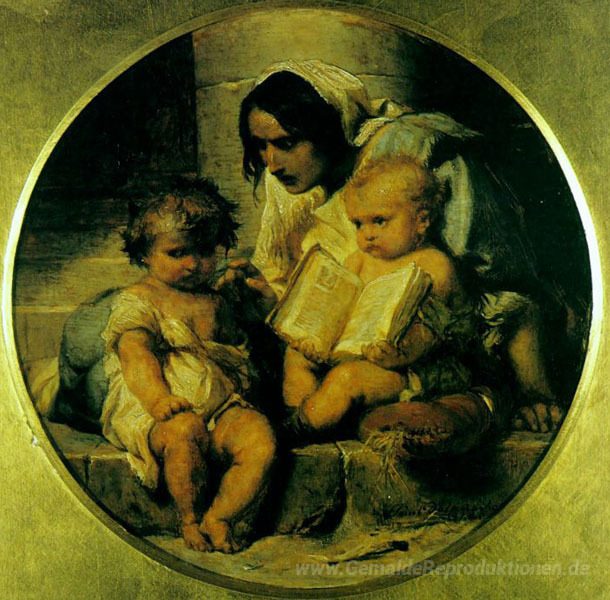 Wir bieten Ihnen eine handgefertigte Reproduktion auf Leinwand des berühmten Kunstwerks 'Ein Kind Lernen, Lesen' von Paul Delaroche, aus dem Reproduktionsmuseum.
