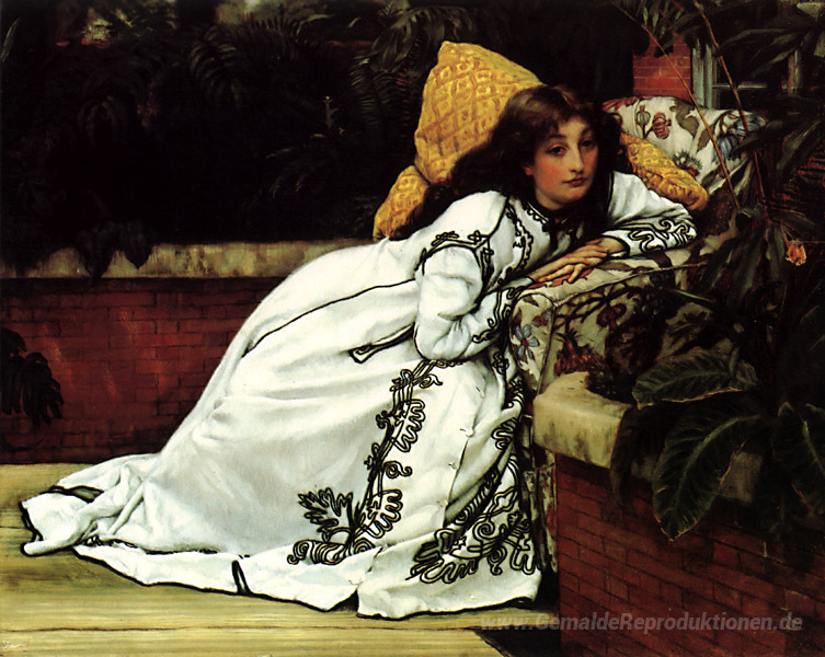 Wir bieten Ihnen eine handgefertigte Reproduktion auf Leinwand des berühmten Kunstwerks 'Ein Mädchen in einem Sessel' von James Tissot, aus dem Reproduktionsmuseum.
