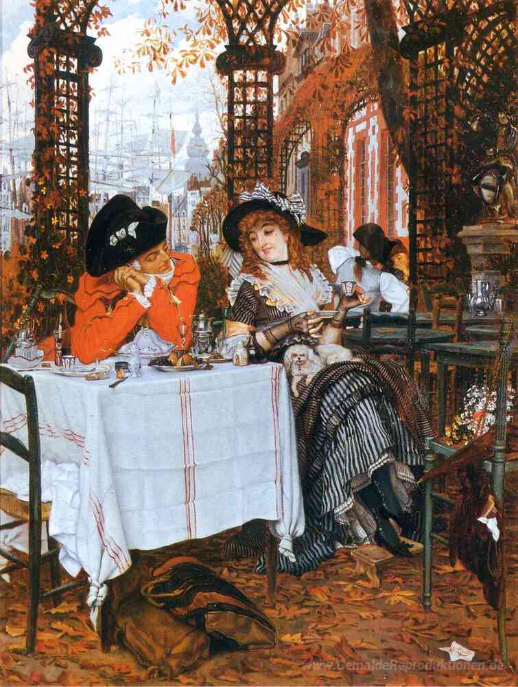 Wir bieten Ihnen eine handgefertigte Reproduktion auf Leinwand des berühmten Kunstwerks 'Ein Mittagessen' von James Tissot, aus dem Reproduktionsmuseum.