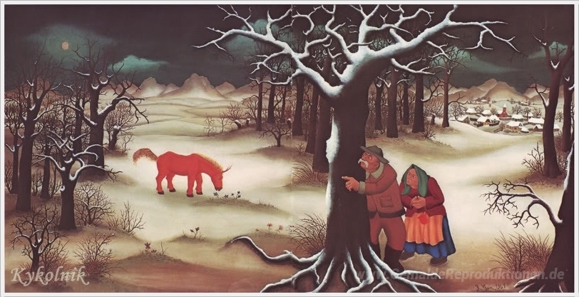 Wir bieten Ihnen eine handgefertigte Reproduktion auf Leinwand des berühmten Kunstwerks 'Ein Pferd mit einem Horn' von Ivan Generalic, aus dem Reproduktionsmuseum.