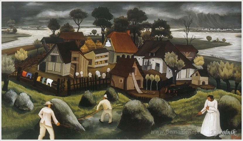 Wir bieten Ihnen eine handgefertigte Reproduktion auf Leinwand des berühmten Kunstwerks 'Eine Insel' von Ivan Generalic, aus dem Reproduktionsmuseum.