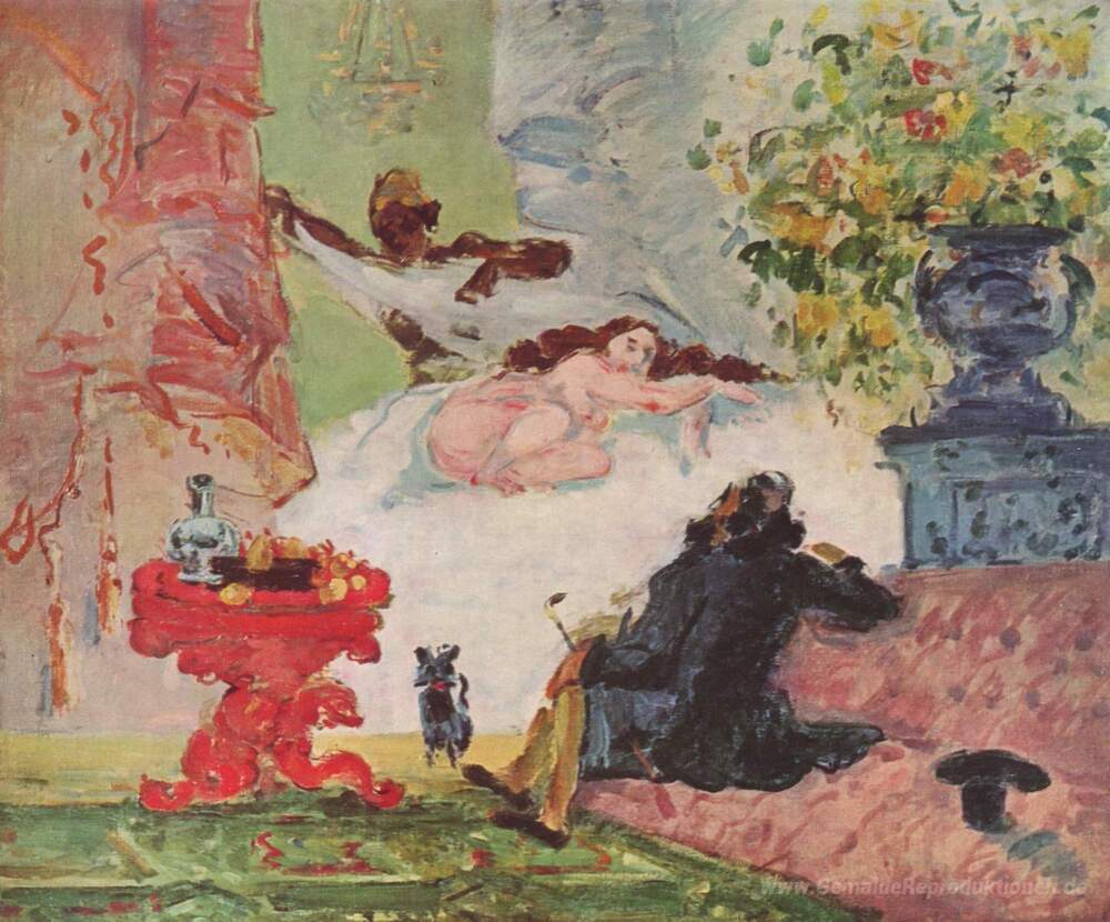 Wir bieten Ihnen eine handgefertigte Reproduktion auf Leinwand des berühmten Kunstwerks 'Eine moderne Olympia' von Paul Cezanne, aus dem Reproduktionsmuseum.