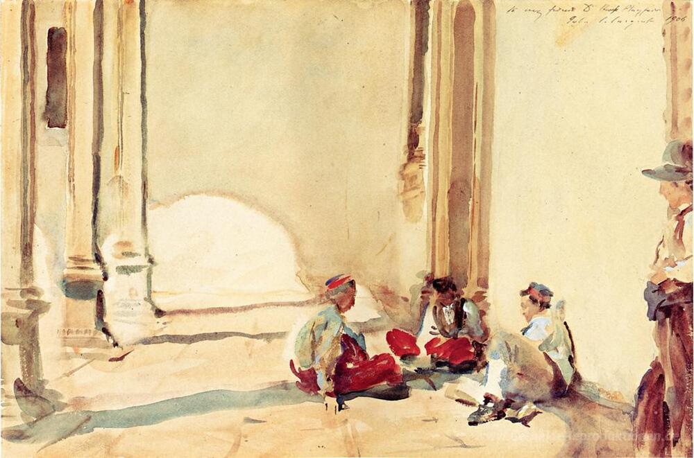 Wir bieten Ihnen eine handgefertigte Reproduktion auf Leinwand des berühmten Kunstwerks 'Eine Spanisch-Kaserne' von John Singer Sargent, aus dem Reproduktionsmuseum.