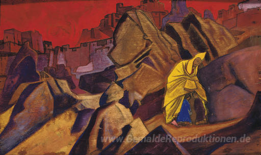 Wir bieten Ihnen eine handgefertigte Reproduktion auf Leinwand des berühmten Kunstwerks 'Einer, der Schutzmaßnahmen' von Nicholas Roerich, aus dem Reproduktionsmuseum.