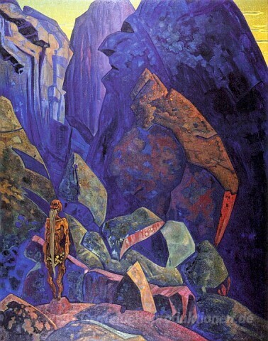 Wir bieten Ihnen eine handgefertigte Reproduktion auf Leinwand des berühmten Kunstwerks 'Ekstase' von Nicholas Roerich, aus dem Reproduktionsmuseum.