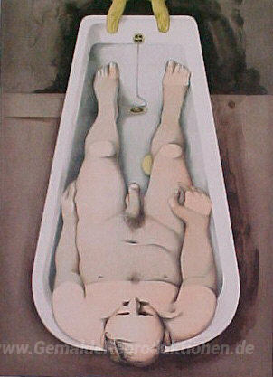 Wir bieten Ihnen eine handgefertigte Reproduktion auf Leinwand des berühmten Kunstwerks 'Er sah voraus, seine blassen Körper' von Richard Hamilton, aus dem Reproduktionsmuseum.