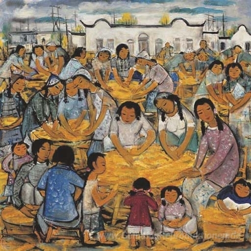 Wir bieten Ihnen eine handgefertigte Reproduktion auf Leinwand des berühmten Kunstwerks 'Ernte' von Lin Fengmian, aus dem Reproduktionsmuseum.