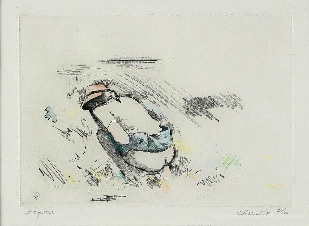 Willkommen in der faszinierenden Welt der Ölgemälde, wo jede Leinwand eine Geschichte erzählt und jede Farbe Emotionen weckt. Entdecken Sie das außergewöhnliche Werk Esquisse, geschaffen von dem renommierten Künstler Richard Hamilton. Hamilton, ein Pionier der Pop-Art-Bewegung, vereint in seinen Arbeiten zeitgenössische Themen mit innovativen Techniken, die den Betrachter in eine neue Dimension der Wahrnehmung einladen.