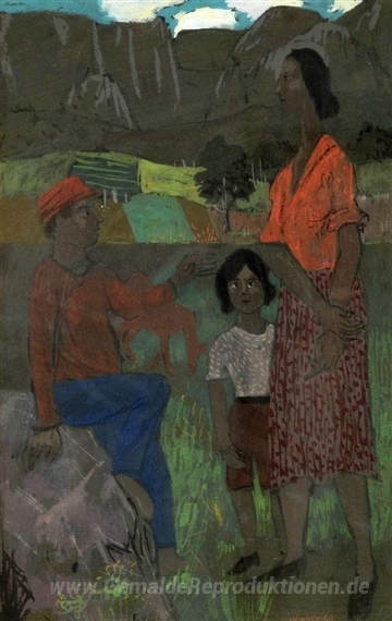 Wir bieten Ihnen eine handgefertigte Reproduktion auf Leinwand des berühmten Kunstwerks 'Familie' von Grégoire Michonze, aus dem Reproduktionsmuseum.
