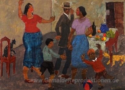 Wir bieten Ihnen eine handgefertigte Reproduktion auf Leinwand des berühmten Kunstwerks 'Familie' von Grégoire Michonze, aus dem Reproduktionsmuseum.
