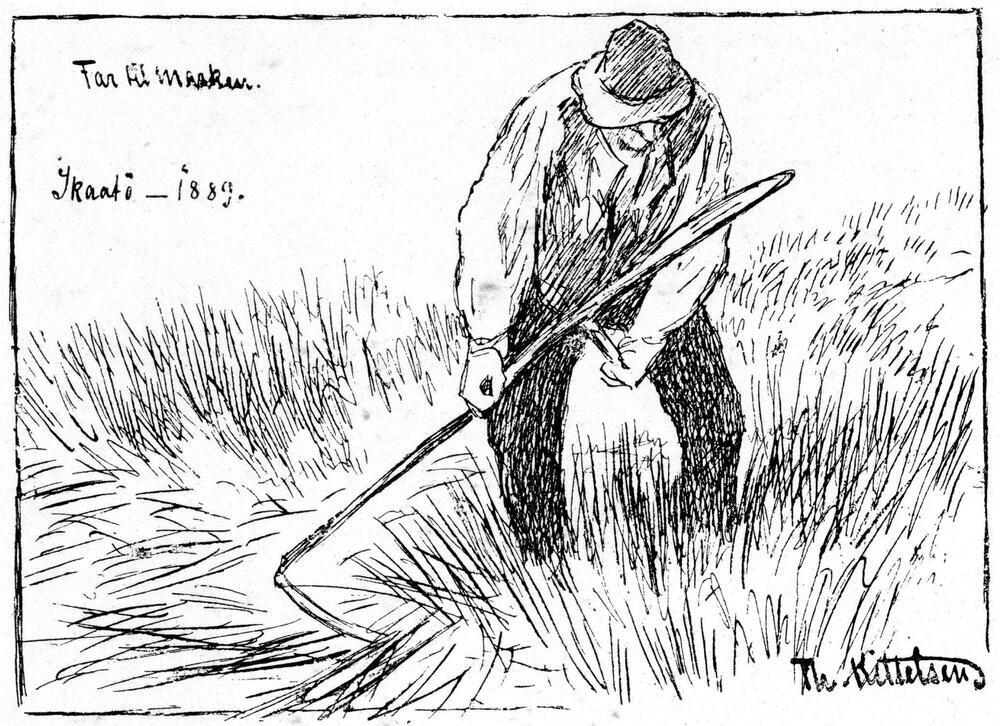 Wir bieten Ihnen eine handgefertigte Reproduktion auf Leinwand des berühmten Kunstwerks 'Far Til Marken' von Theodor Severin Kittelsen, aus dem Reproduktionsmuseum.