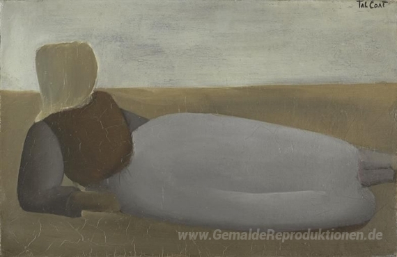 Wir bieten Ihnen eine handgefertigte Reproduktion auf Leinwand des berühmten Kunstwerks 'Femme allongée' von Pierre Tal-Coat, aus dem Reproduktionsmuseum.