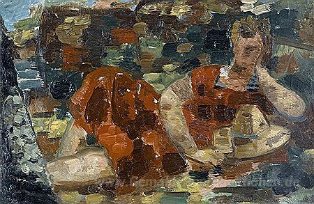 Wir bieten Ihnen eine handgefertigte Reproduktion auf Leinwand des berühmten Kunstwerks 'Femme couchée dans l'herbe' von Roger Bissière, aus dem Reproduktionsmuseum.
