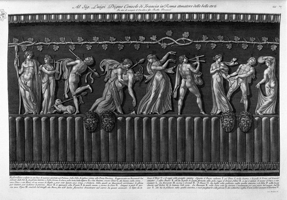Wir bieten Ihnen eine handgefertigte Reproduktion auf Leinwand des berühmten Kunstwerks 'Flachrelief in einem Marmor-Vase in die bestehende Palast der Vi' von Giovanni Battista Piranesi, aus dem Reproduktionsmuseum.