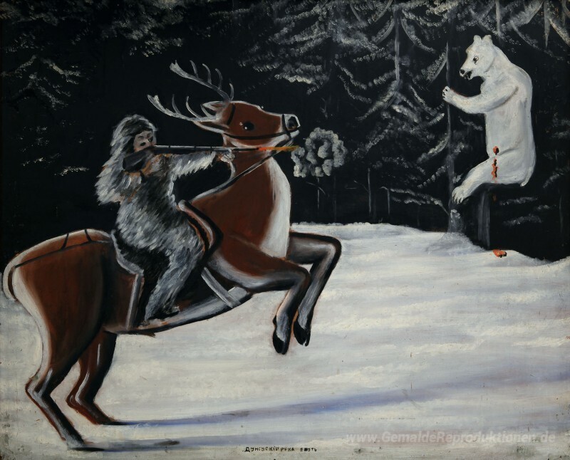 Wir bieten Ihnen eine handgefertigte Reproduktion auf Leinwand des berühmten Kunstwerks 'Fluss Emut in Tungus' von Niko Pirosmani, aus dem Reproduktionsmuseum.
