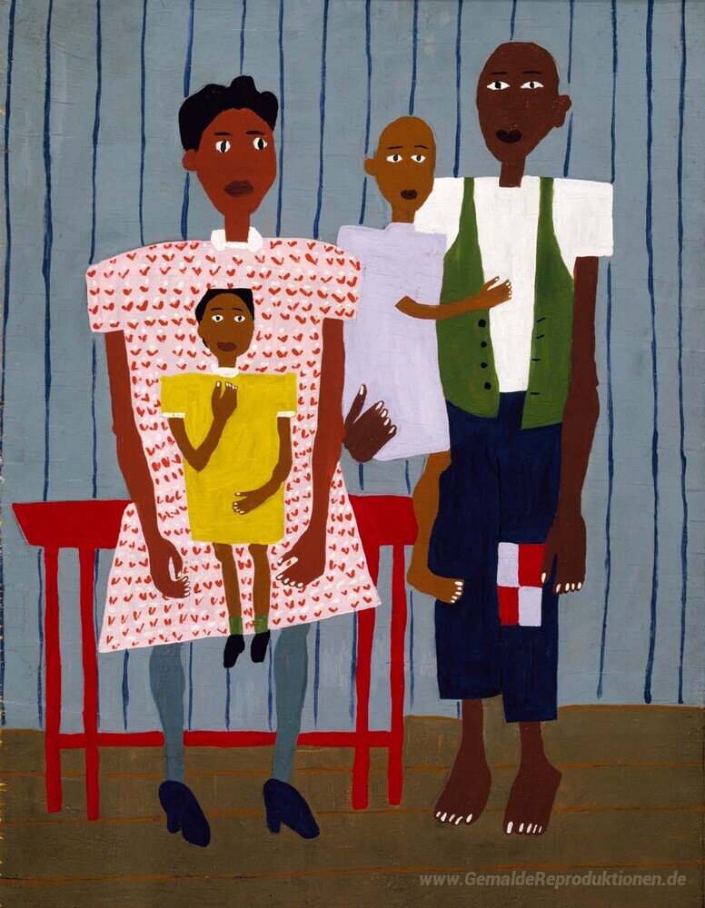 Wir bieten Ihnen eine handgefertigte Reproduktion auf Leinwand des berühmten Kunstwerks 'Folk Familie' von William H. Johnson, aus dem Reproduktionsmuseum.