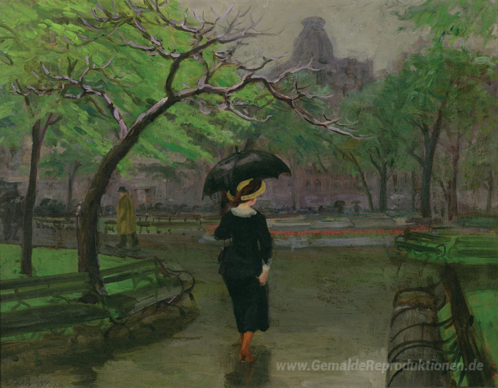 Mit meisterhaften Pinselstrichen und sorgfältiger Lichtführung schafft Sloan eine Atmosphäre, die den Betrachter in die Kunst einzieht. Die Detailtreue und die geschickte Verwendung von Texturen verleihen dem Gemälde eine nahezu dreidimensionale Qualität, die perfekt in jeden Raum integriert werden kann. Erleben Sie, wie Frühlings-Regen, New York Ihre Wohnumgebung aufwertet und zugleich einen inspirierenden Dialog zwischen Kunst und Lebensraum eröffnet.