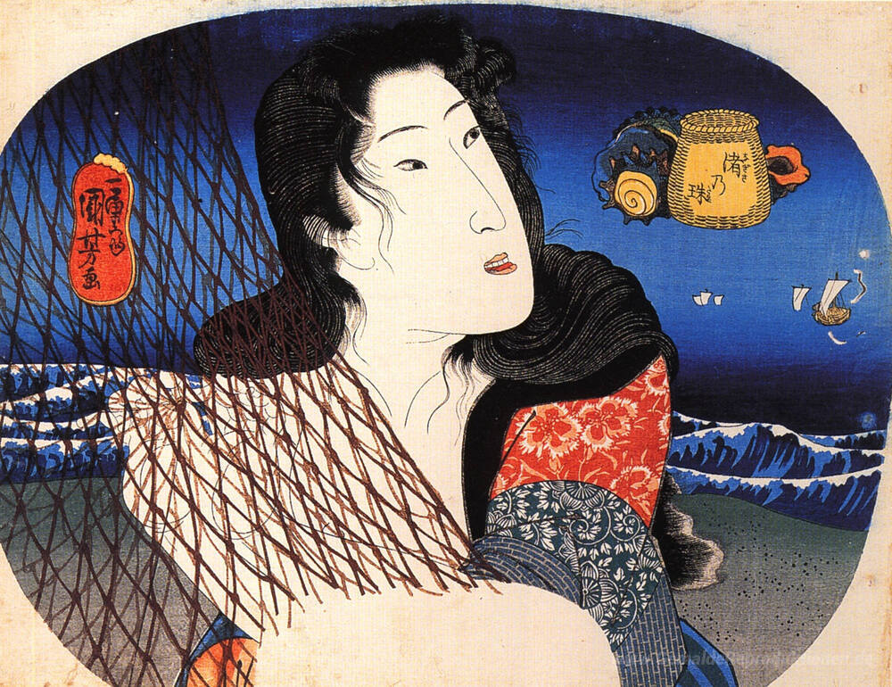 Entdecken Sie die faszinierende Welt der Ölgemälde und deren bedeutender Künstler auf unserer E-Commerce-Website. Eines der herausragenden Werke ist „Frau Ausbessern ein Fischnetz“ von Utagawa Kuniyoshi, einem Meister des Ukiyo-e. Kuniyoshi, bekannt für seine eindrucksvollen Darstellungen von Alltagsleben und Natur, schafft durch seine ausgeklügelte Farbpalette und dynamischen Kompositionen eine besondere Verbindung zur Betrachterin oder zum Betrachter.