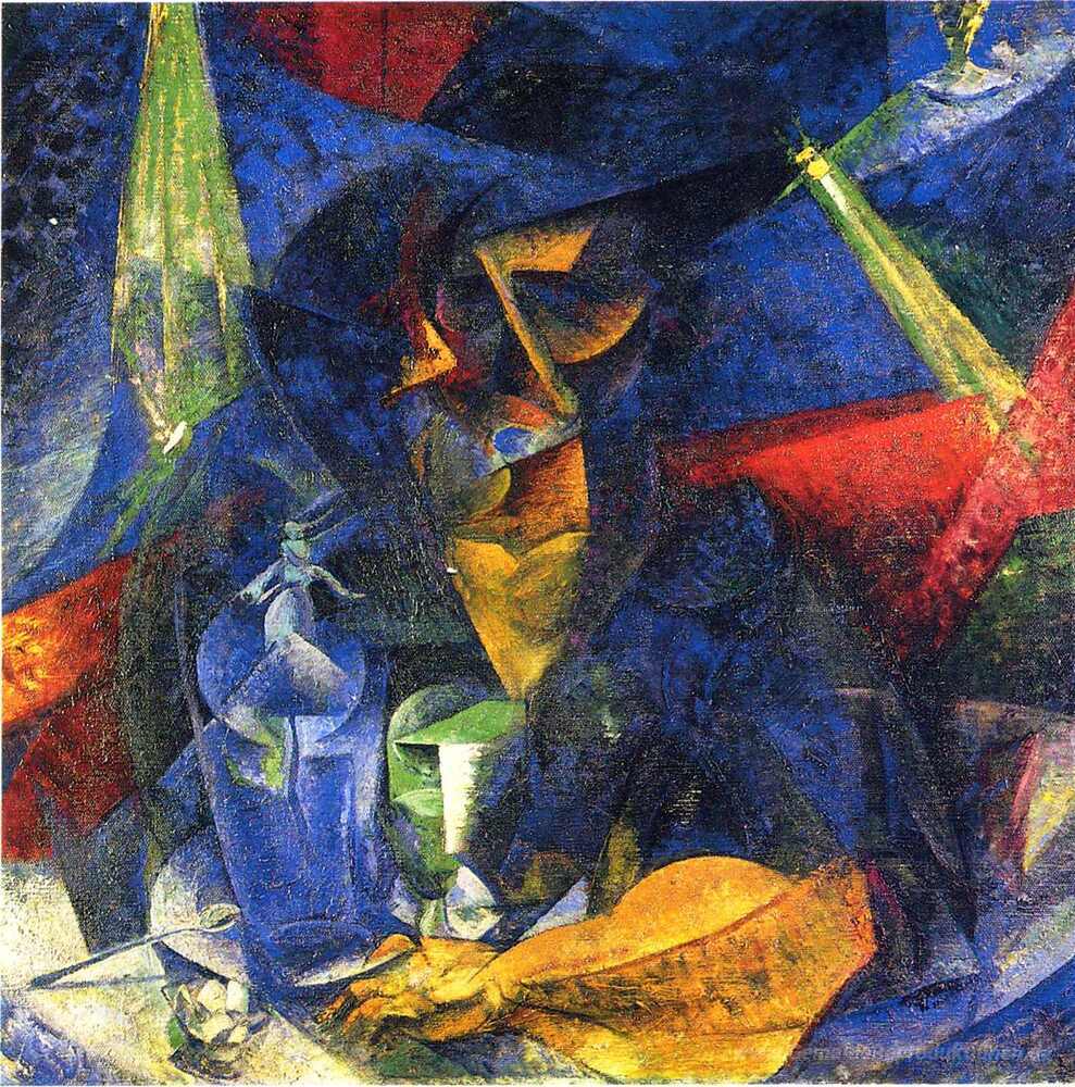 Willkommen in der faszinierenden Welt der Ölgemälde, wo sich Kunst und Emotion vereinen. Unser hervorgehobenes Kunstwerk, Frau in einem Café: Compenetrations of Lights und Flugzeuge, stammt von dem visionären Künstler Umberto Boccioni, einem Wegbereiter des Futurismus. Seine innovativen Techniken und der dynamische Einsatz von Farben und Licht geben dem Betrachter einen eindrucksvollen Einblick in die moderne Welt und die Beziehung des Menschen zur Urbanität.