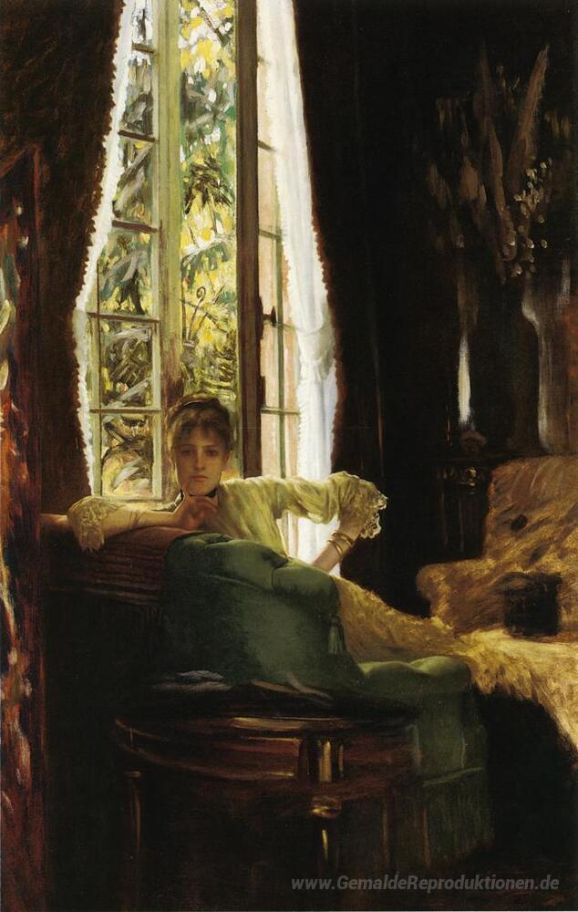 Wir bieten Ihnen eine handgefertigte Reproduktion auf Leinwand des berühmten Kunstwerks 'Frau in einem Innenraum' von James Tissot, aus dem Reproduktionsmuseum.