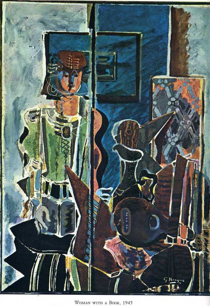 Wir bieten Ihnen eine handgefertigte Reproduktion auf Leinwand des berühmten Kunstwerks 'Frau mit Buch' von Georges Braque, aus dem Reproduktionsmuseum.