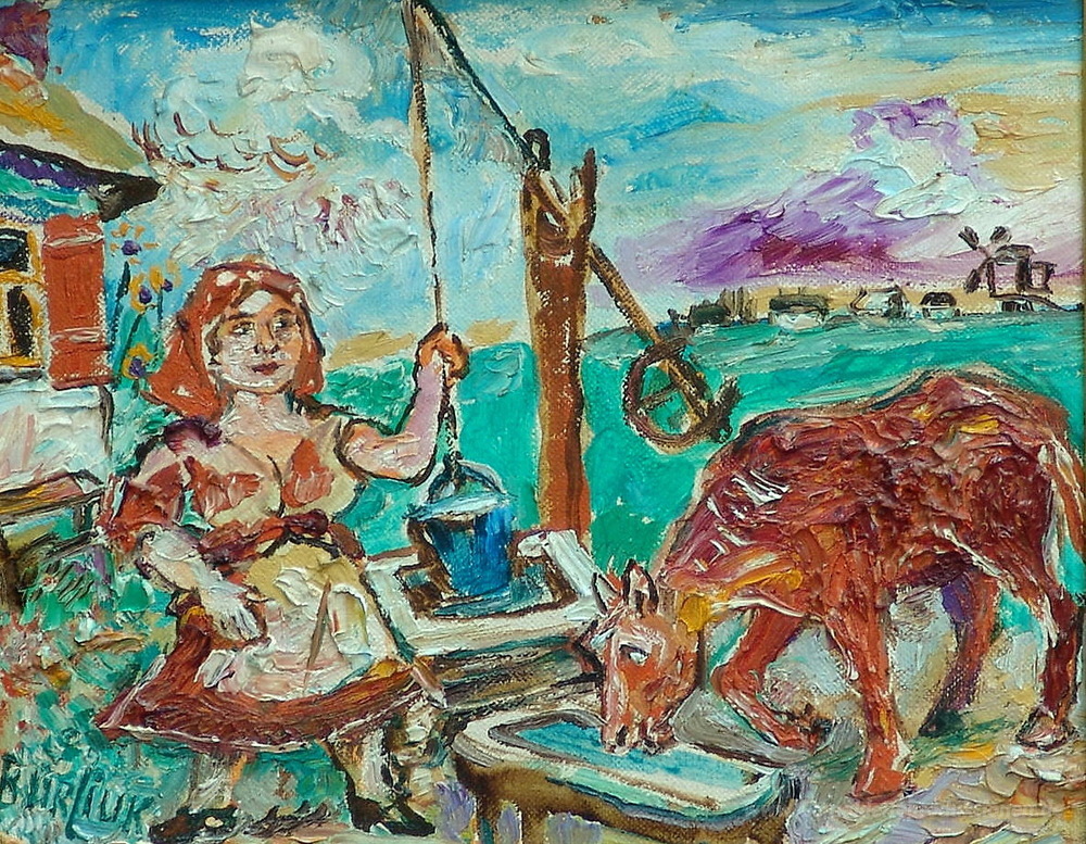 „Frau mit roten Kuh“ besticht durch sein lebhaftes Farbenspiel und die dynamische Komposition, die jedem Raum eine unverwechselbare Atmosphäre verleiht. Ob im Wohnzimmer oder im Arbeitszimmer, dieses Gemälde wird zum zentralen Blickfang und schafft eine inspirierende Umgebung. Lassen Sie sich von der Kunst von David Burliuk anziehen und bringen Sie mit seinen Ölgemälden zeitlose Eleganz und Kreativität in Ihr Zuhause.