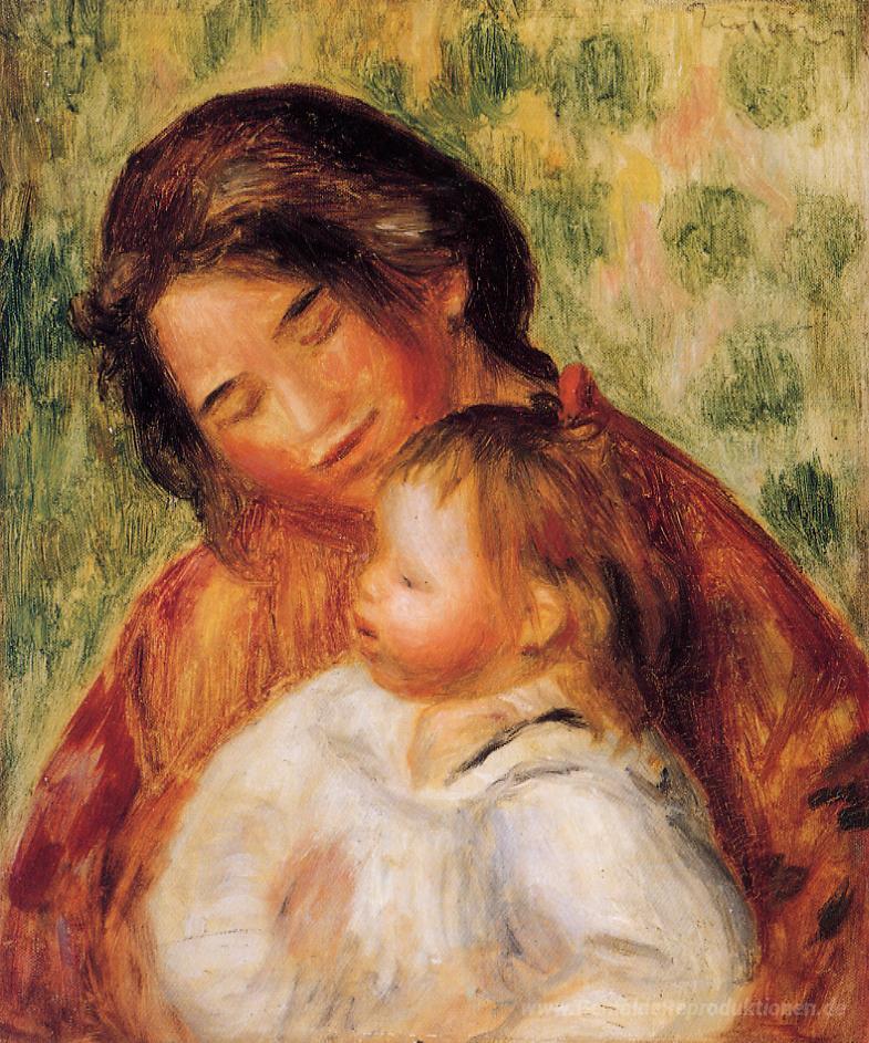 Wir bieten Ihnen eine handgefertigte Reproduktion auf Leinwand des berühmten Kunstwerks 'Frau und Kind' von Pierre-Auguste Renoir, aus dem Reproduktionsmuseum.