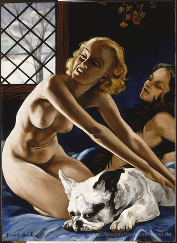 Wir bieten Ihnen eine handgefertigte Reproduktion auf Leinwand des berühmten Kunstwerks 'Frauen und Bulldog' von Francis Picabia, aus dem Reproduktionsmuseum.