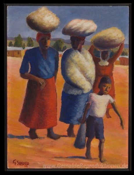 Wir bieten Ihnen eine handgefertigte Reproduktion auf Leinwand des berühmten Kunstwerks 'Frauen und des Kindes, Eastwood, PRETORIA' von Gerard Sekoto, aus dem Reproduktionsmuseum.