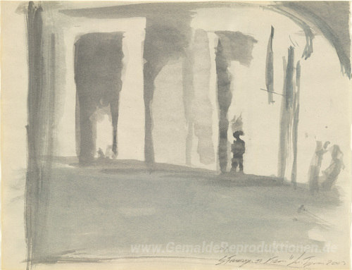 Wir bieten Ihnen eine handgefertigte Reproduktion auf Leinwand des berühmten Kunstwerks 'Fremde im Zug' von Luc Tuymans, aus dem Reproduktionsmuseum.