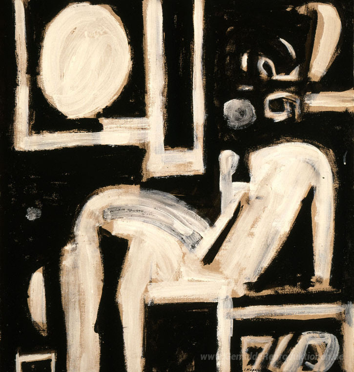 Wir bieten Ihnen eine handgefertigte Reproduktion auf Leinwand des berühmten Kunstwerks 'Funeral Komposition VII' von Yiannis Moralis, aus dem Reproduktionsmuseum.
