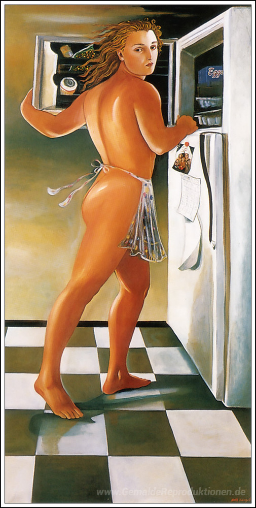Wir bieten Ihnen eine handgefertigte Reproduktion auf Leinwand des berühmten Kunstwerks 'Göttin in den Gefrierschrank' von Edith Vonnegut, aus dem Reproduktionsmuseum.