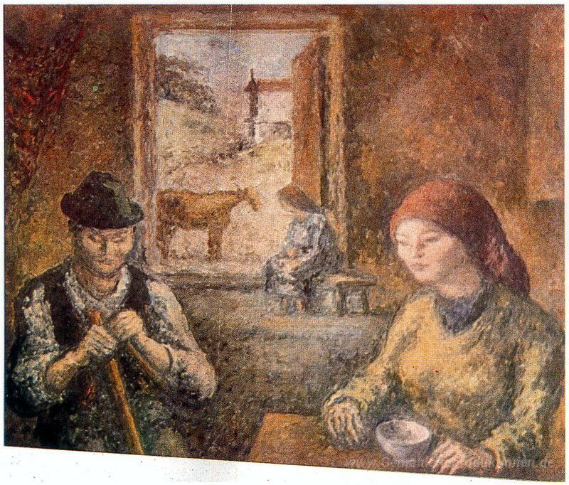 Wir bieten Ihnen eine handgefertigte Reproduktion auf Leinwand des berühmten Kunstwerks 'Galizisch Innen' von Arturo Souto, aus dem Reproduktionsmuseum.
