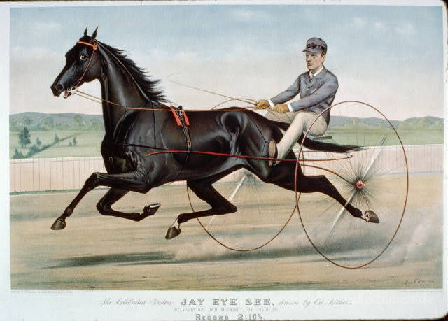 Wir bieten Ihnen eine handgefertigte Reproduktion auf Leinwand des berühmten Kunstwerks 'Gefeiert trotter Jay Eye See' von Currier and Ives, aus dem Reproduktionsmuseum.