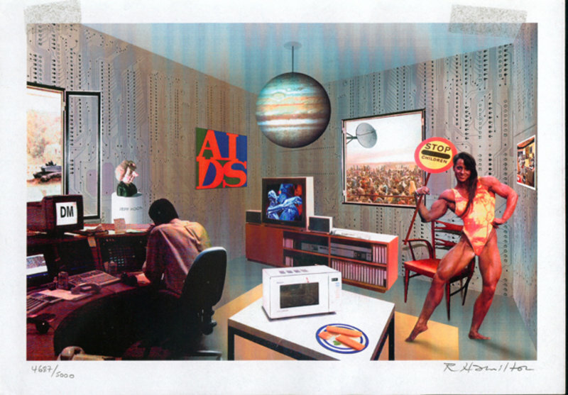 Wir bieten Ihnen eine handgefertigte Reproduktion auf Leinwand des berühmten Kunstwerks 'Genau das, was ist es, dass die heutigen Wohnungen eigentlich so' von Richard Hamilton, aus dem Reproduktionsmuseum.
