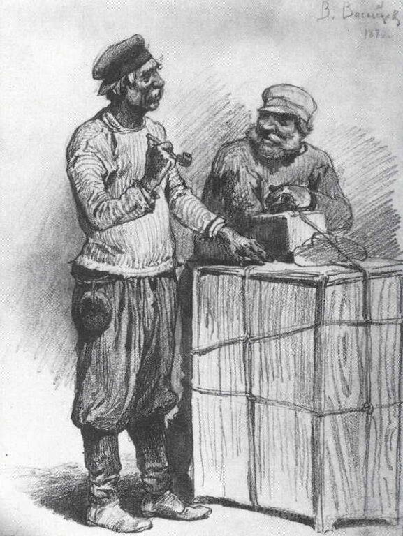 Wir bieten Ihnen eine handgefertigte Reproduktion auf Leinwand des berühmten Kunstwerks 'Gepäckträger' von Viktor Vasnetsov, aus dem Reproduktionsmuseum.