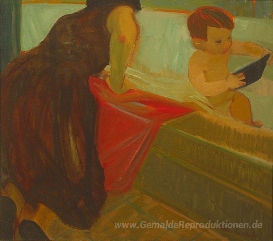 Wir bieten Ihnen eine handgefertigte Reproduktion auf Leinwand des berühmten Kunstwerks 'Grüne Badewanne' von Elmer Bischoff, aus dem Reproduktionsmuseum.