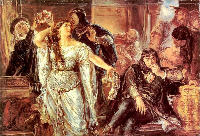 Wir bieten Ihnen eine handgefertigte Reproduktion auf Leinwand des berühmten Kunstwerks 'Gryfino und Leszek' von Jan Matejko, aus dem Reproduktionsmuseum.