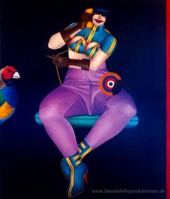 Wir bieten Ihnen eine handgefertigte Reproduktion auf Leinwand des berühmten Kunstwerks 'Hallo' von Richard Lindner, aus dem Reproduktionsmuseum.