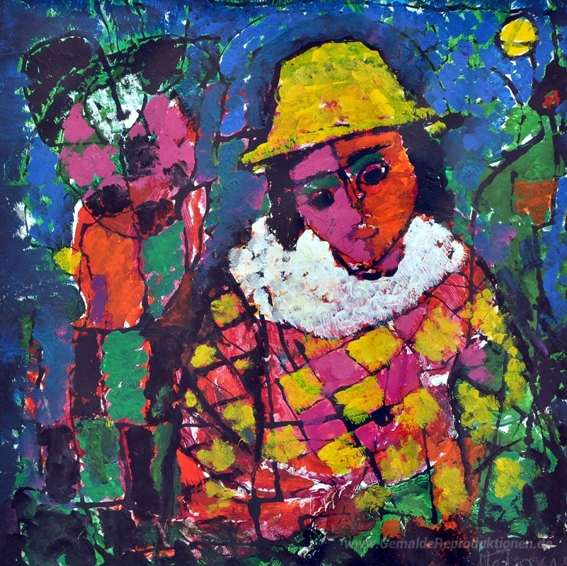 Wir bieten Ihnen eine handgefertigte Reproduktion auf Leinwand des berühmten Kunstwerks 'Harlekin' von George Stefanescu-Ramnic , aus dem Reproduktionsmuseum.