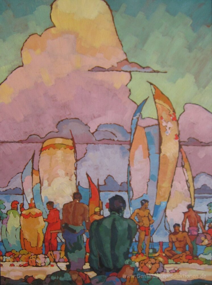 Wir bieten Ihnen eine handgefertigte Reproduktion auf Leinwand des berühmten Kunstwerks 'Hawaiianer' von Arman Manookian, aus dem Reproduktionsmuseum.