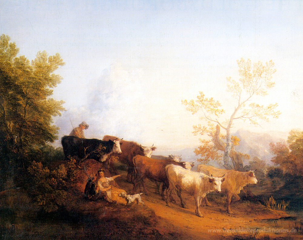 Wir bieten Ihnen eine handgefertigte Reproduktion auf Leinwand des berühmten Kunstwerks 'Heimkehr' von Thomas Gainsborough, aus dem Reproduktionsmuseum.