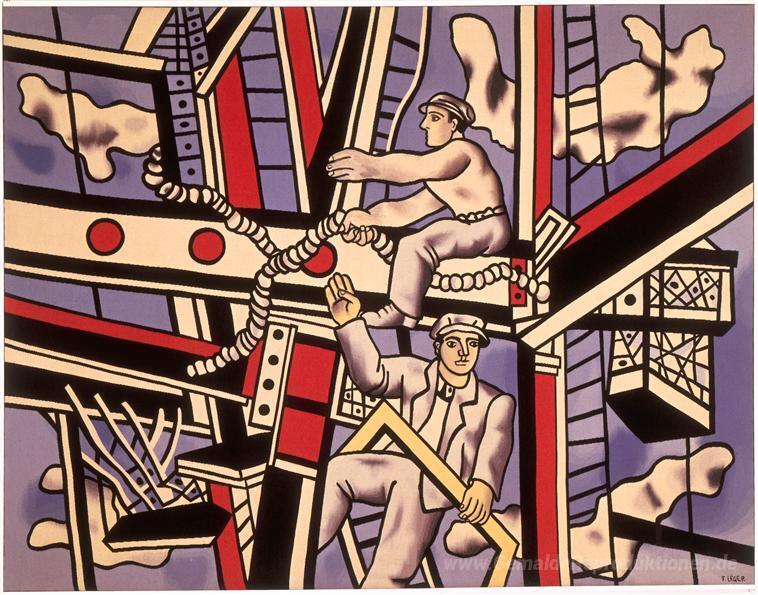 Wir bieten Ihnen eine handgefertigte Reproduktion auf Leinwand des berühmten Kunstwerks 'Hersteller auf einem blauen Hintergrund' von Fernand Leger, aus dem Reproduktionsmuseum.